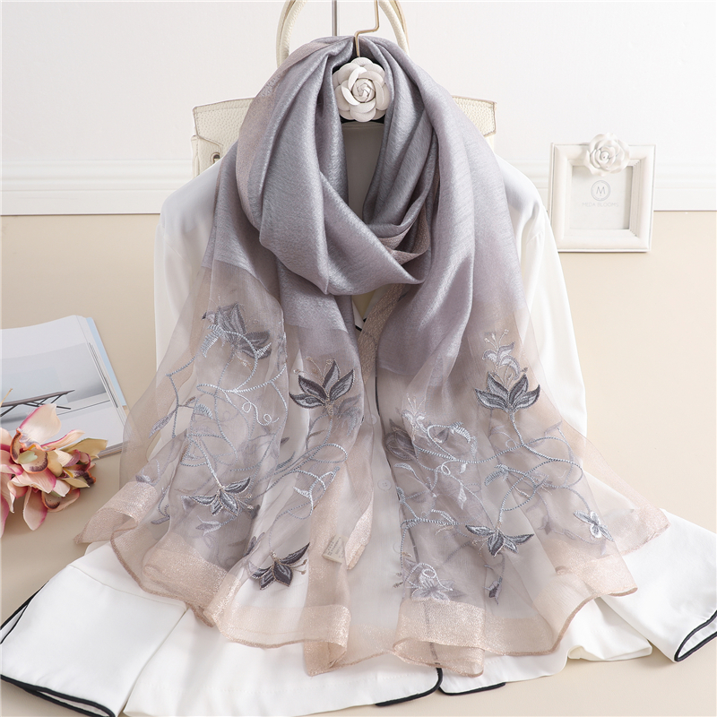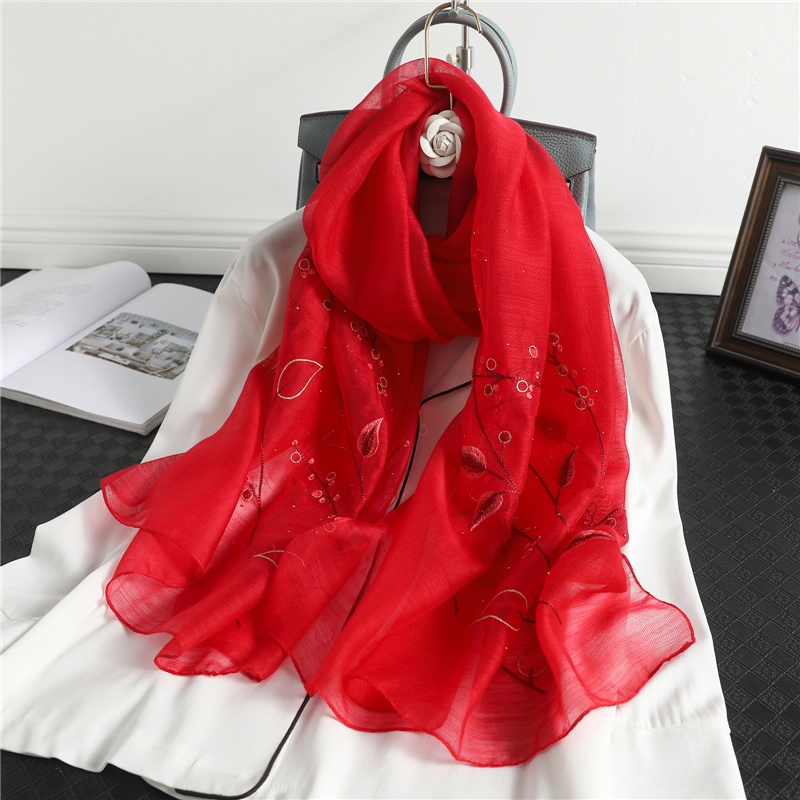 Pair this embroidery floral silk scarf with any outfit for the perfect winter look.