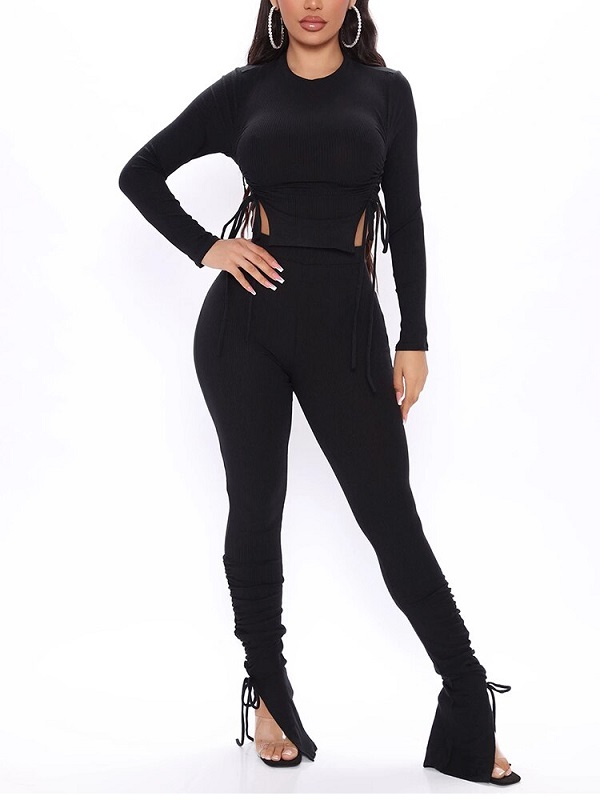 Casual Ruched Bodycon Trousers Two Piece Pants Set