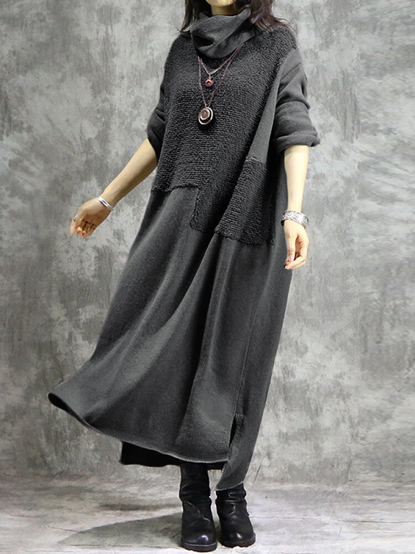 Solid Floral Printed Long Sleeves Two Tone Maxi Length Dress
