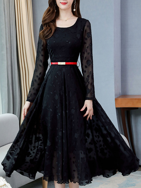 Long Sleeves Round Neckline Mini Dress