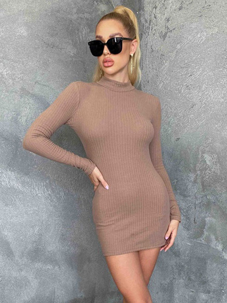 Bodycon Dresses Long Sleeves Casual Jewel Neck Midi Dress