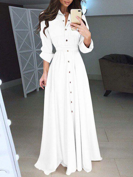 High Rise Stand Collar Buttons Long Sleeves Shirt Maxi Dress