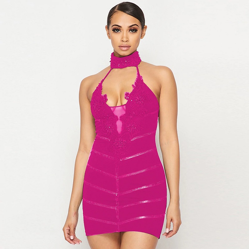 Sexy Lace Halter Sleeveless Beading Mini Club Dresses