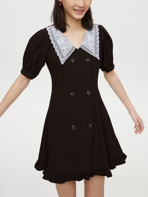 Lacework Double-Breasted Short Sleeve Dress