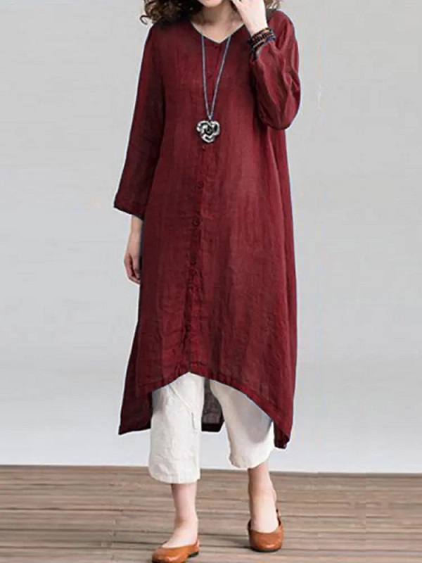 Sleeve Asymmetrical Midi Shirt Casual Belted Long Dress
