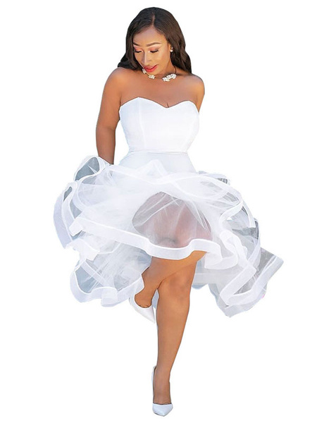 White Bodycon Dress Strapless Ruffles Shaping Sexy Party Dress