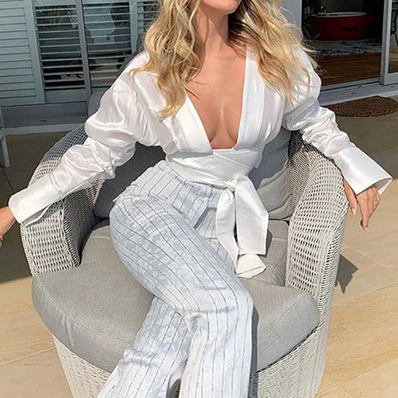 Hollow Out Bandage Long Sleeve O Neck Crop TopShorts Suit Floral Long Sleeve Bow Lace Up Chiffon Beach Blouses Shirt + Shorts Outfits 2 Piece Set