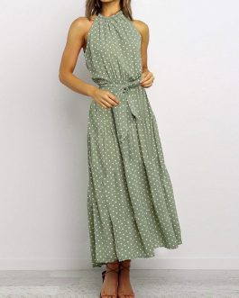Polka Dot Sleeveless Chiffon Maxi Dresses