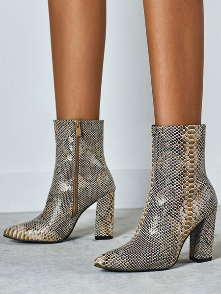 High Heel Snake Pattern Pointed Toe Ankle BootsOriginal price was: $214.98.$171.98Current price is: $171.98. -