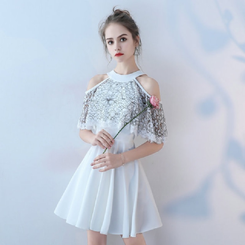 Women’s cocktail dress, lace swing prom party dress, halter sleeveless a-line cocktail dress, elegant vintage formal tea party dress, short floral lace wedding bridesmaid dress, fit and flare flowy evening dress. Absolutely perfect for your wedding! This Wedding dress is divided into two styles according to the lenght of the hem. High-Low/Keen Lenght hemline, Off shoulder, Zipper Closure, Hem design and slim waist highlight your body curves. Elegant retro lace swing dress. Wear it for your big day! It was so much cheaper than paying hundreds for a wedding dress only wear once! You could wear this anytime you wanted. Definitely recommend this beautiful dress! You won’t regret it!
