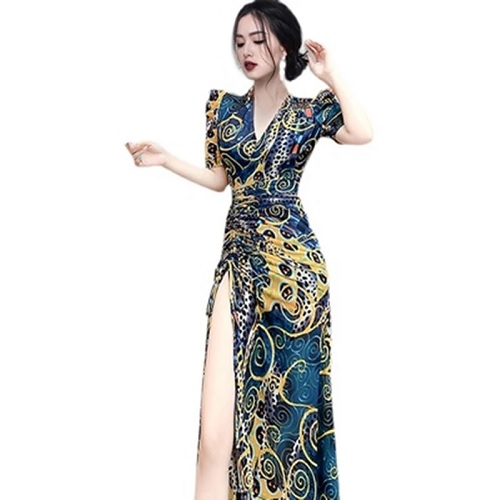 Fashion Floral Sexy Deep V-Neck Open Fork Beach DressOriginal price was: $81.00.$44.13Current price is: $44.13. -