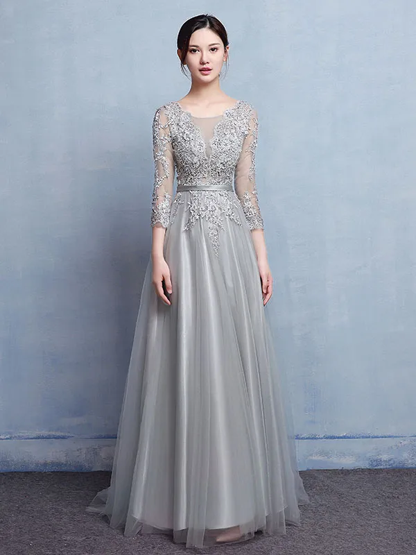 Grey Blue A-Line Sexy Luxury Beaded Evening DressesOriginal price was: $535.80.$428.64Current price is: $428.64. -