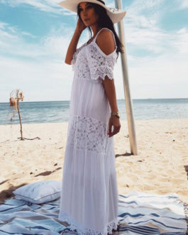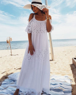 Bohemian Lace Patchwork Tunic Open Shoulder Holiday Maxi Dresses