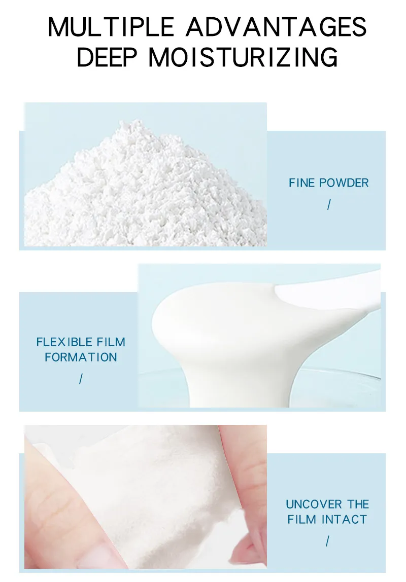 Pour soft mask powder into a bowl, add 25ml hyaluronic acid moisturizing source liquid