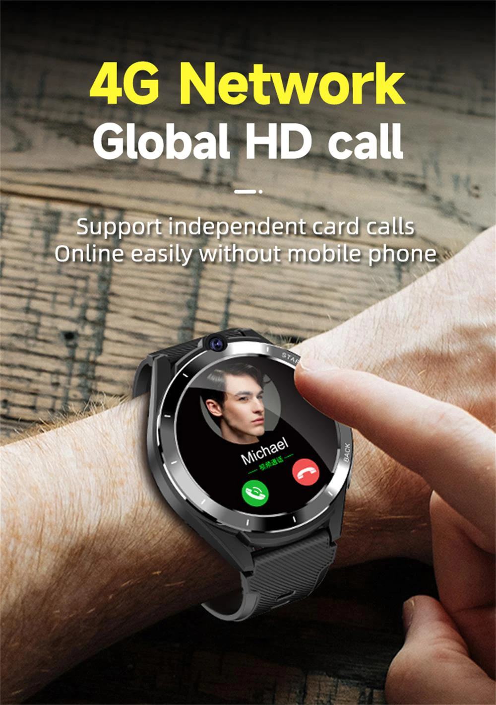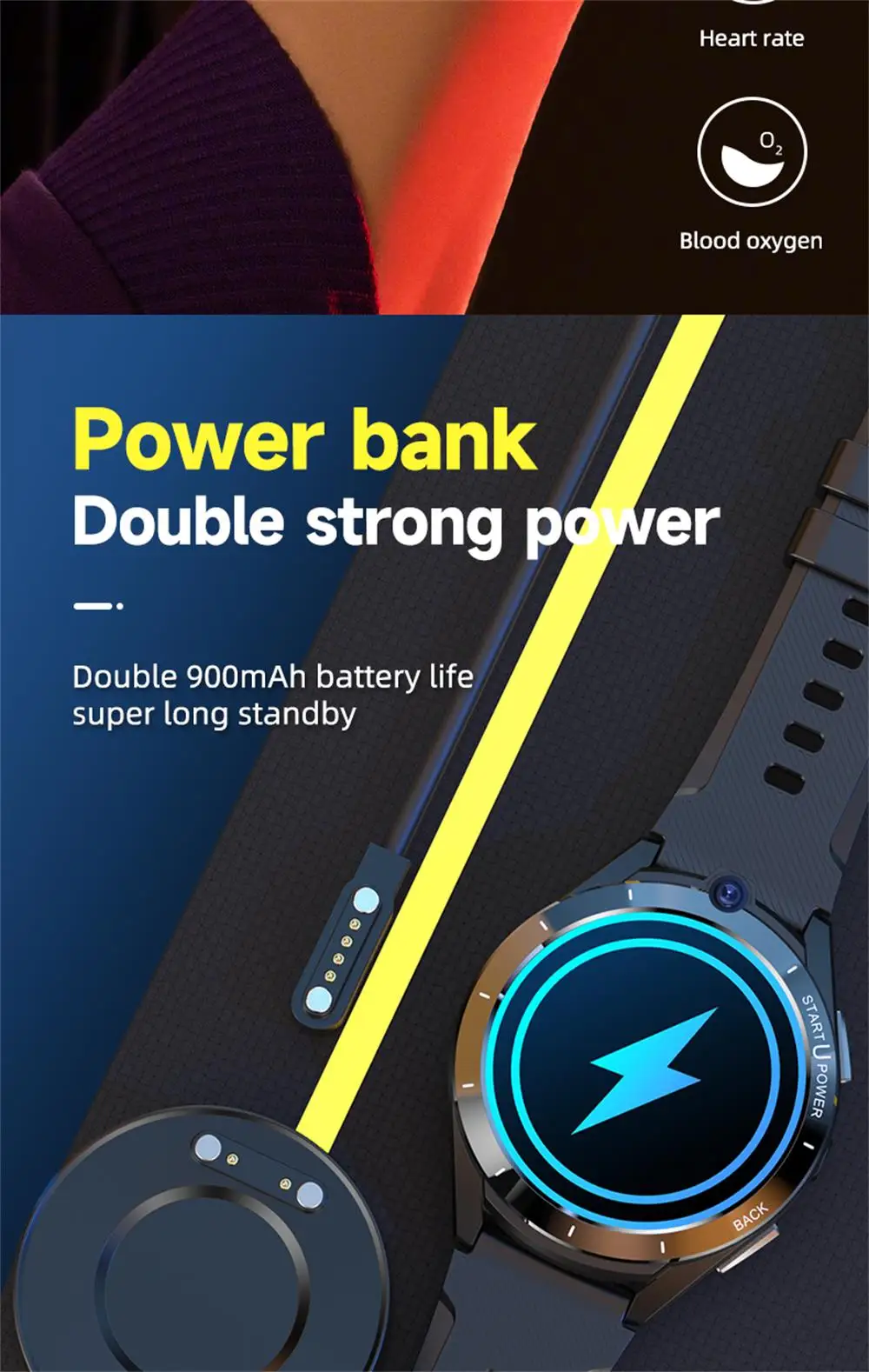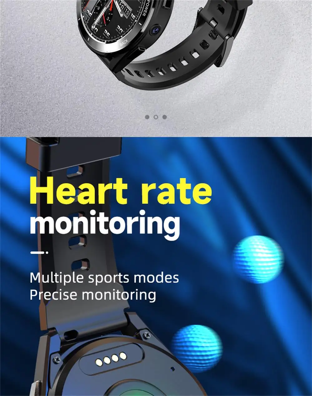 Product parameters: 1.CPU: Ums312+par2822 dual chip. 2.Memory: DDR4 6GB,EMMC:128GB. 3.SIM card: independent standby, hands-free call, nano Sim. 4.Supported frequency band:GSM: 850 / 900 / 1800 / 1900,WCDMA: B1/B2/B5,TD-SCDMA: B34/,LTE-FDD:B1/B2/B3/B5/B7/B8/B12/B17/B20,LTE-TDD:B38/B39/B40/B41(100MHz). 5.Touch screen: 1.6 inch 400*400 resolution HD full round screen. 6.Camera: Top 2million / main 8million HD camera. 7.Bluetooth,Wifi,GPS:support. 8.Heart rate: support. 9.Step counting: supported. 10.Data interface: pogo pin+ magnetic cable / power bank. 11.Battery: smart watch 900mah.