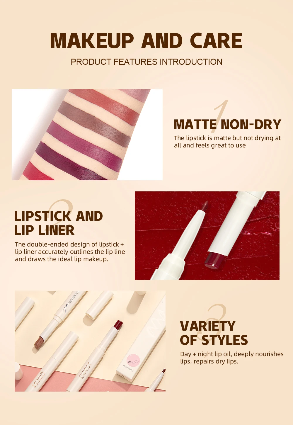 Rust red, Coffee, Dark Pink, Deep Purple, Lavender, Peach
