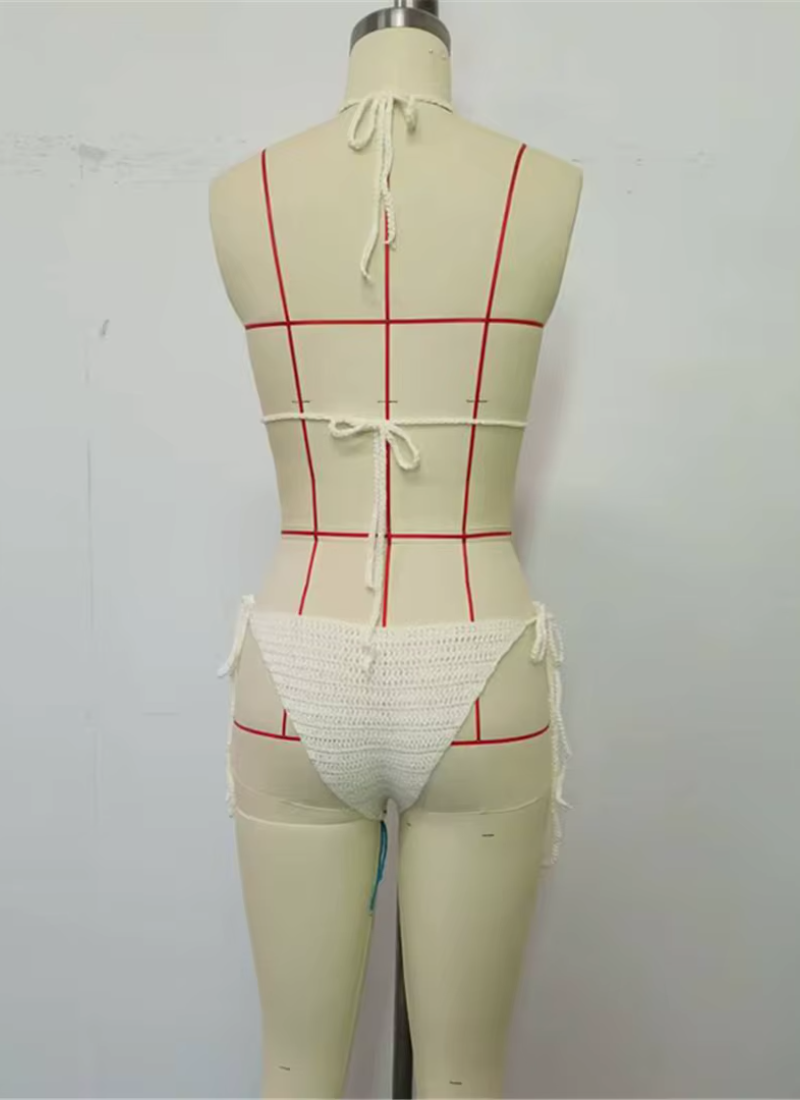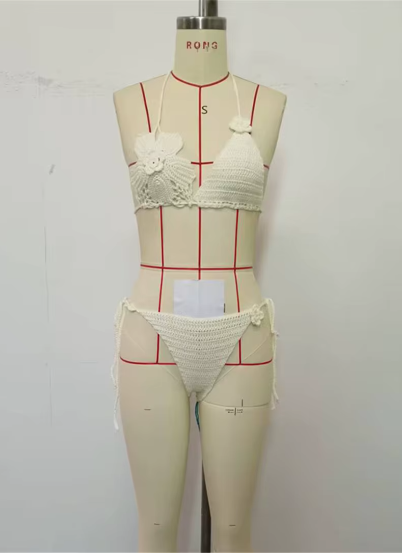 3D Flowers Halter Strappy Knitted Bikini Swimsuit Two-pieces Bikini set