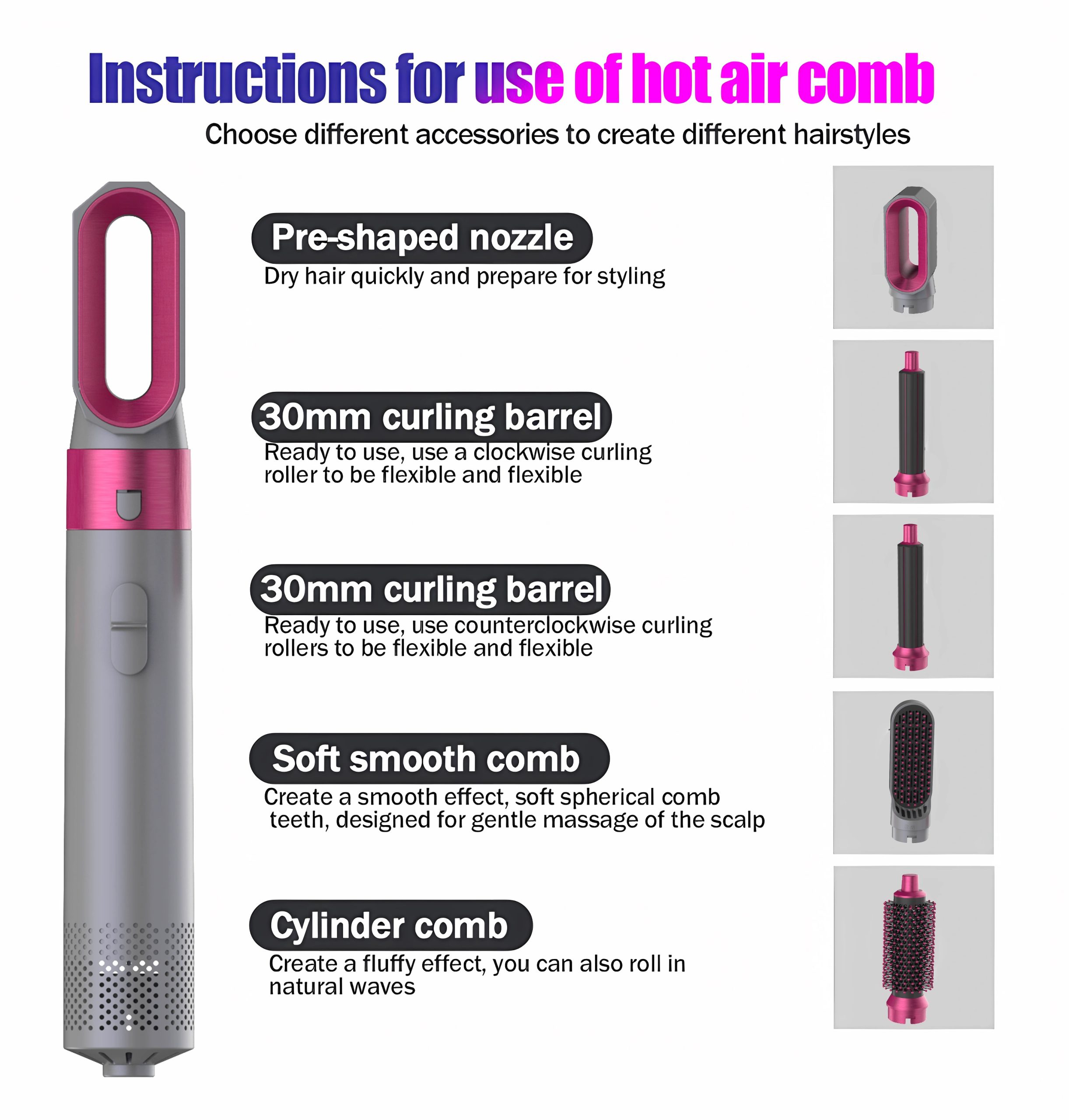 5-in-1 Hair Dryer Hot Air Comb: Versatile styling tool.