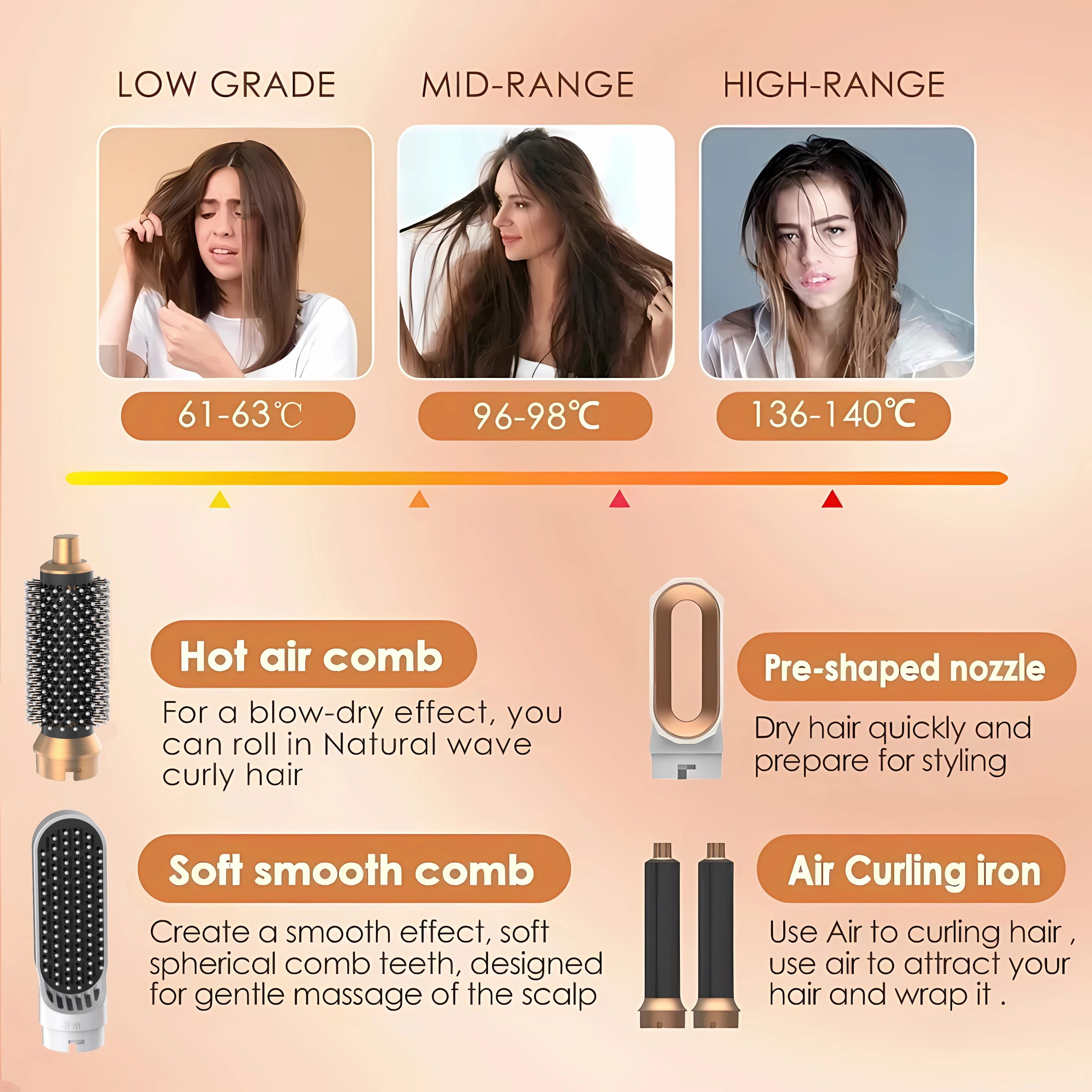 Three Different Temperature Gears: Adjustable heat settings.
