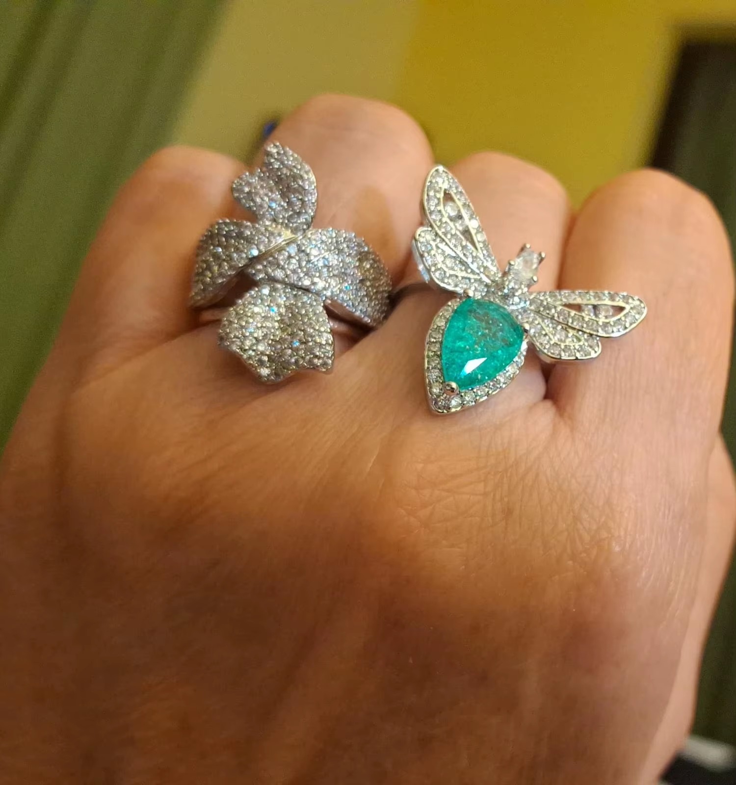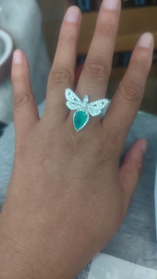 925 Sterling Silver Color Big Bling Zircon Stone Dragonfly Rings