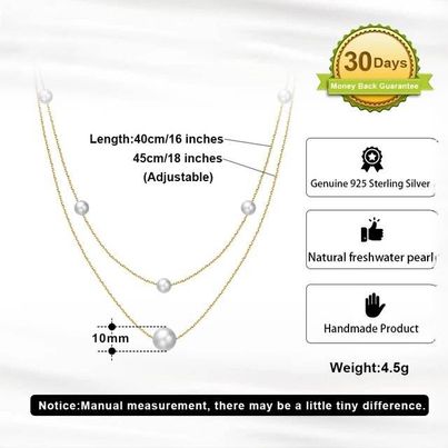 925 Sterling Silver Layered Pearl Necklace
