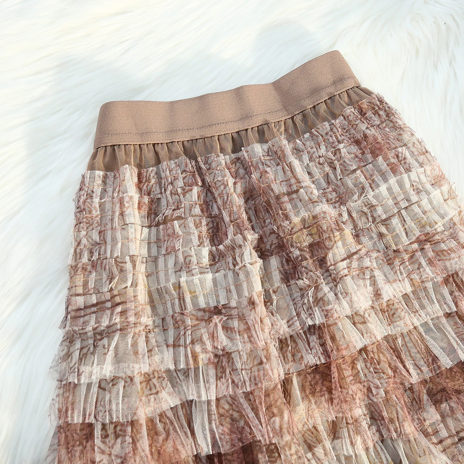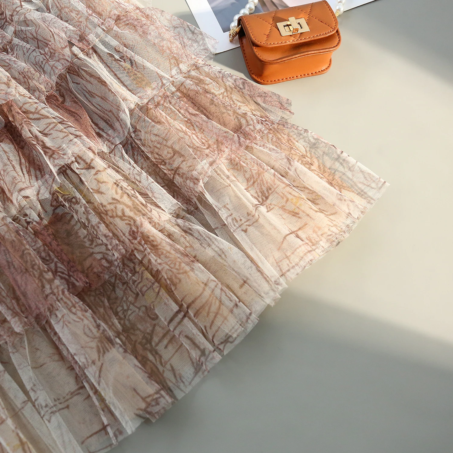 All-Season Retro Pleated Tulle Skirt Elegant Prints for the Fashion-Conscious