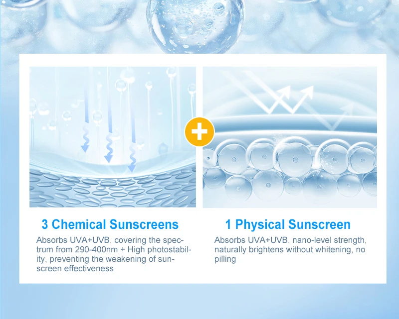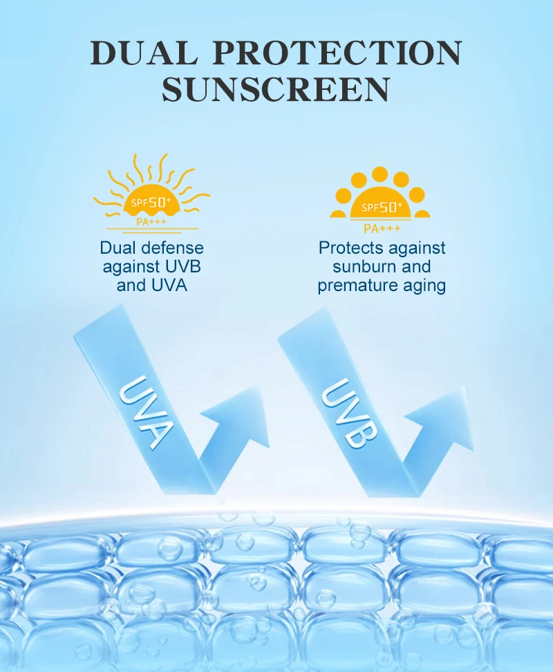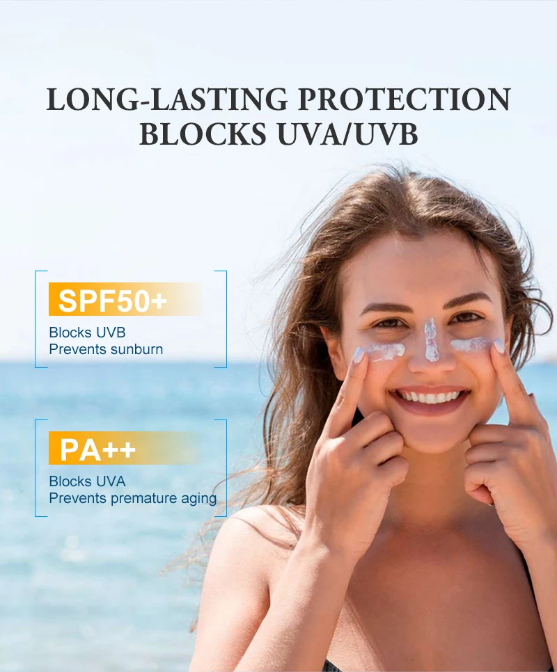 Combining chemical and physical protection, this product collaboratively guards against UVA and UVB rays, providing broad-spectrum sun protection. Enhanced with a waterproof and sweat-resistant formula, it increases resistance to sun exposure.