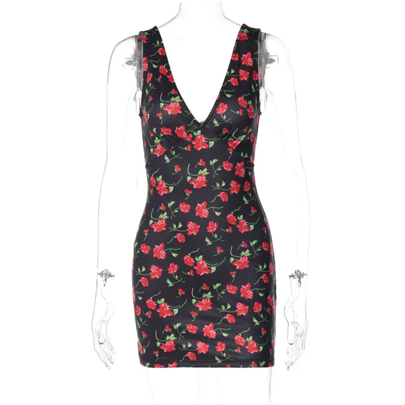 Alluring Sleeveless Floral Sling Dress V-Neck for Casual Elegance