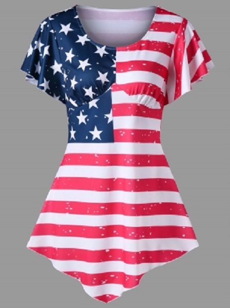 Be the first to review “Asymmetrical American Flag Print T-shirt”