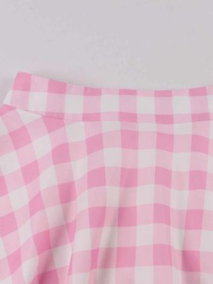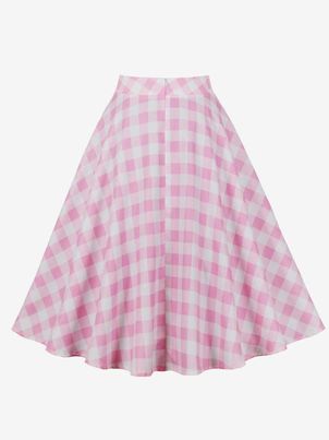 Barbie Pink Gingham Skirt Plaid Mid-calf Length Women Bottoms