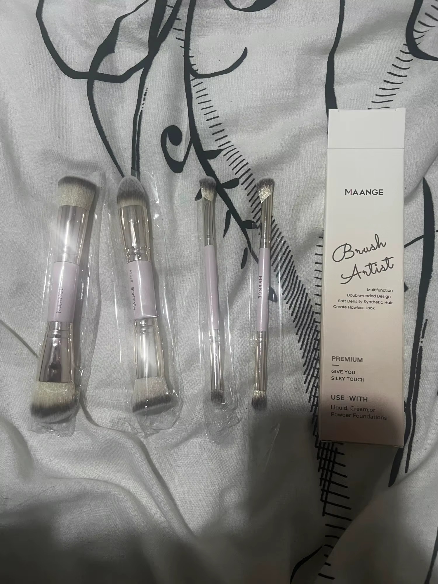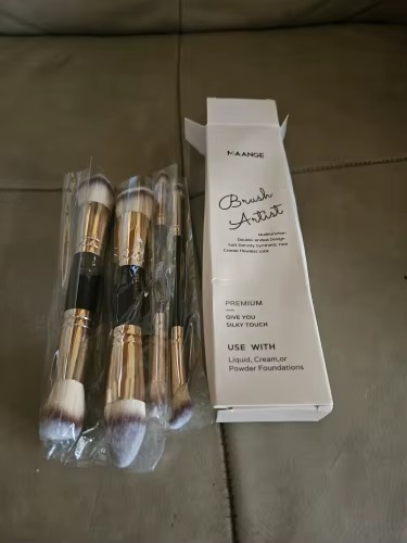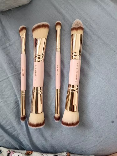 1.【4pcs foundation brush set】 Dual-ended foundation brush include in the makeup brushes kit.You have two shapes of Kabuki brushes which can achieves flawless coverage, super densely packed bristles maneuver in and around the crevices and contours of your face for seamless, even coverage.