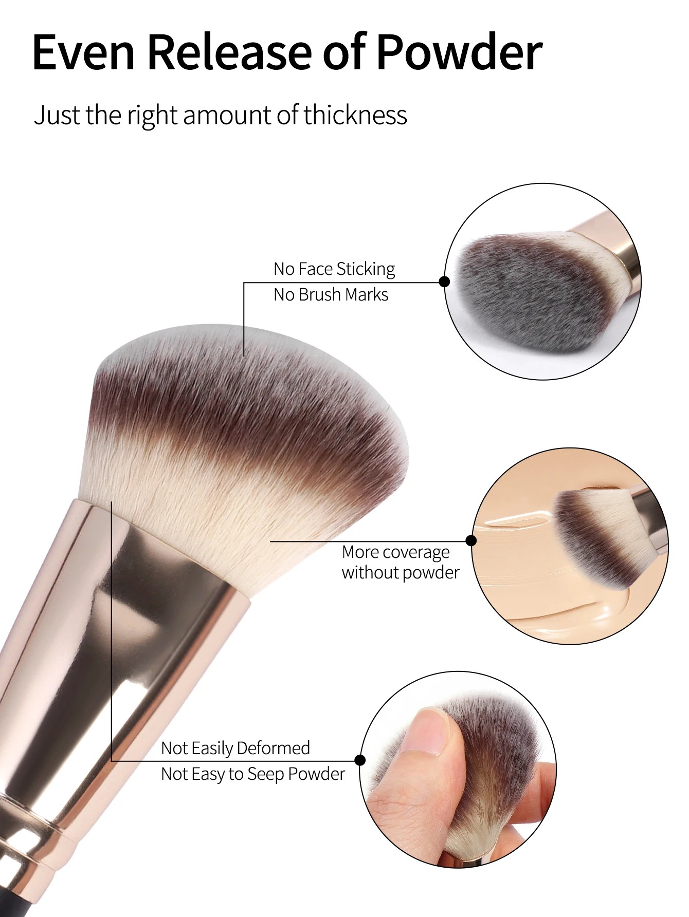 2.【Makes for easy application】 Dense soft brush you can use for liquid foundation, more bristle height on your foundation brush so that you can get a better “sweep” during application.