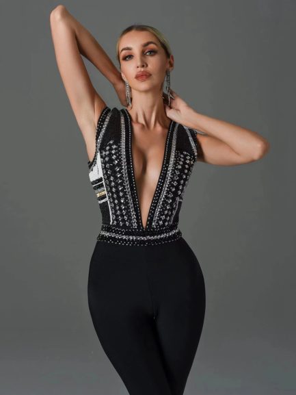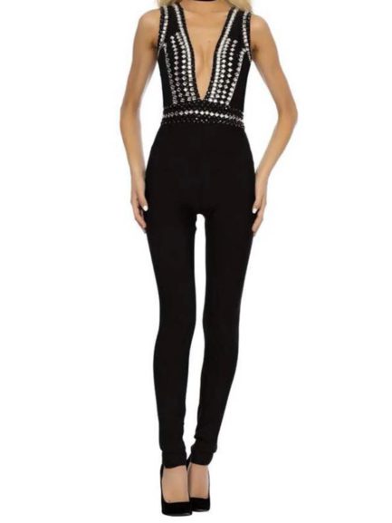 Beading Sleeveless & Full Pants Jumpsuits