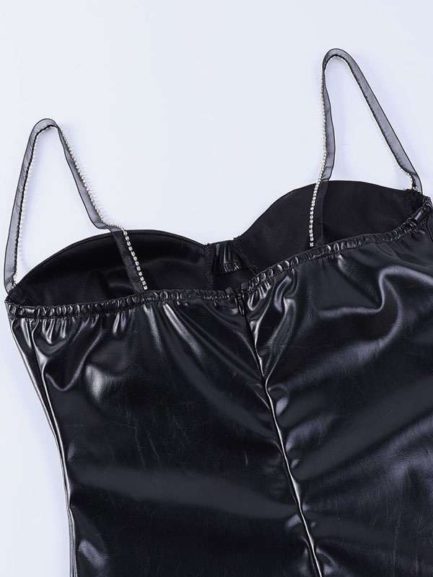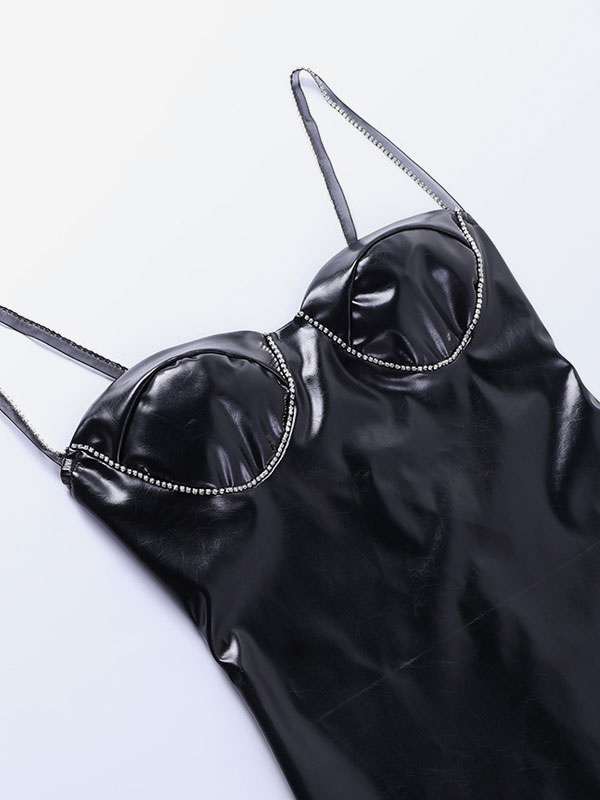 Black Rhinestones Straps Semi Formal Bodycon Dress