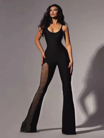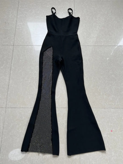 Black Sexy Suspenders U-neck Jumpsuit
