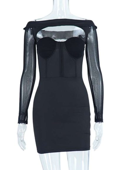 Long Sleeves Cowl Neck Mini Bodycon Dresses