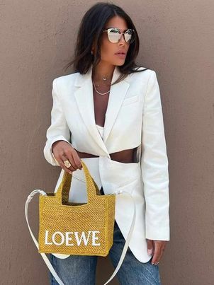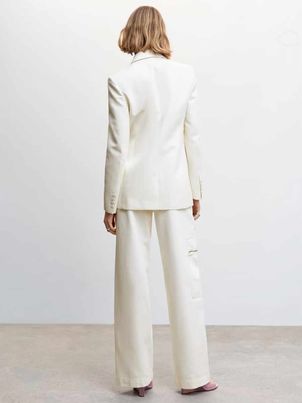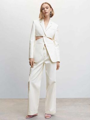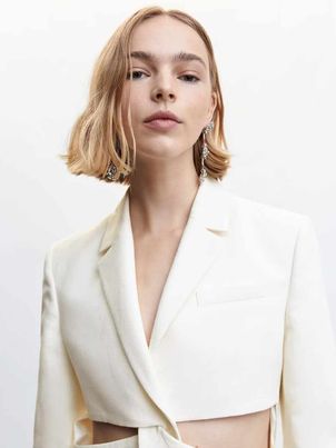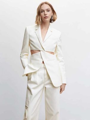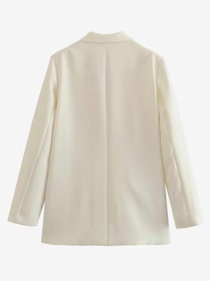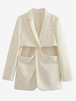 Blazer Jacket White Cut Out Lapel Long Sleeves Outerwear