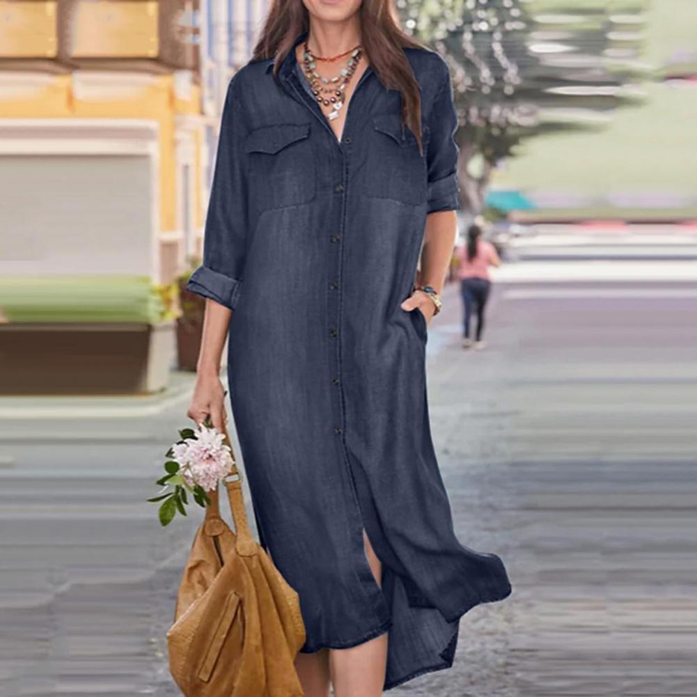 Be the first to review “Long Sleeve Turn Down Collar Buttons Shirt Dresses”