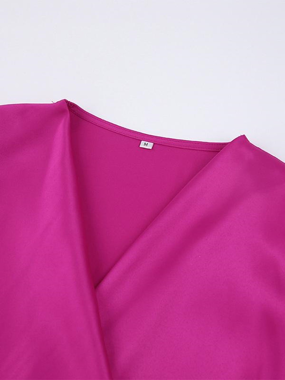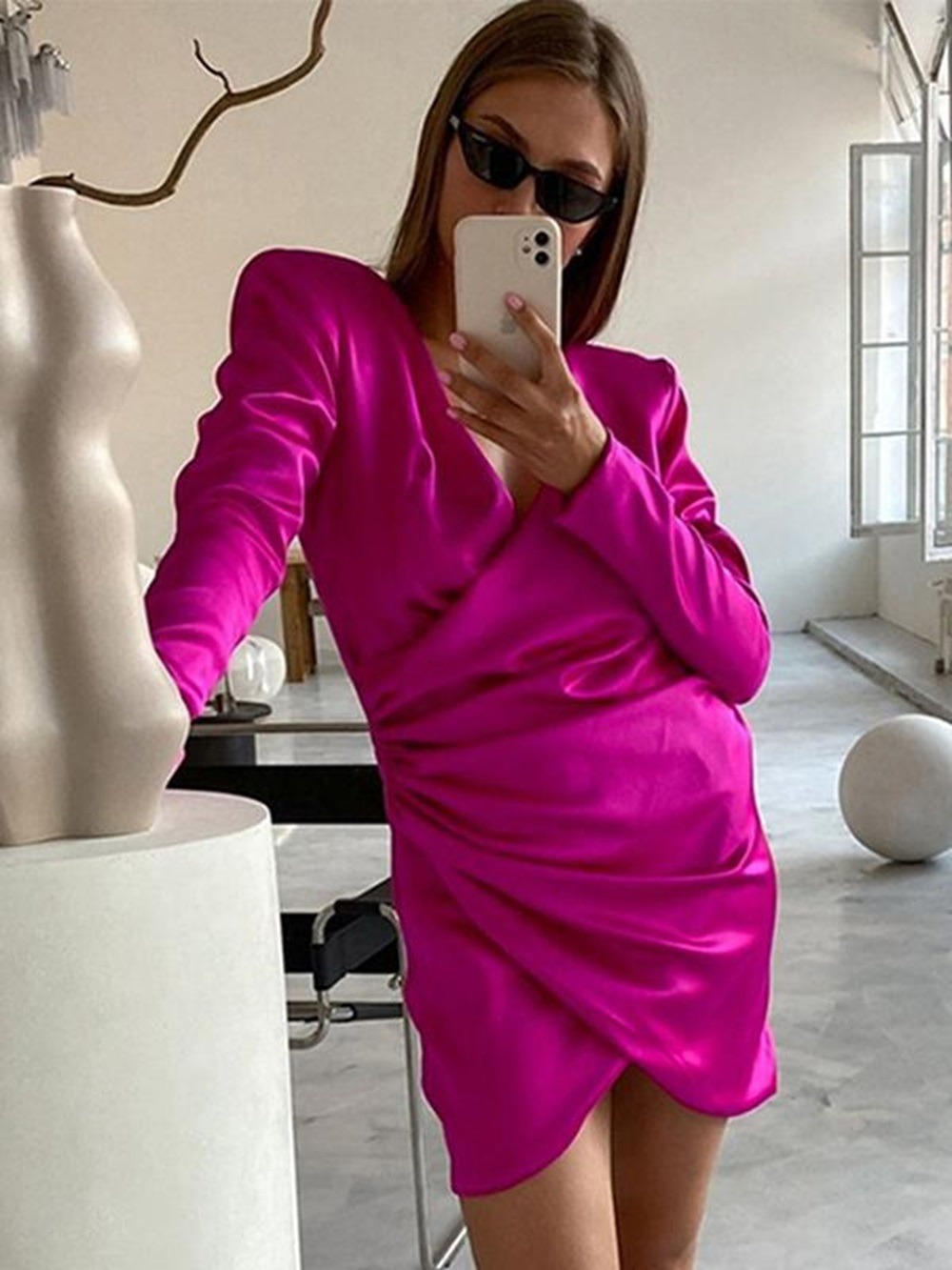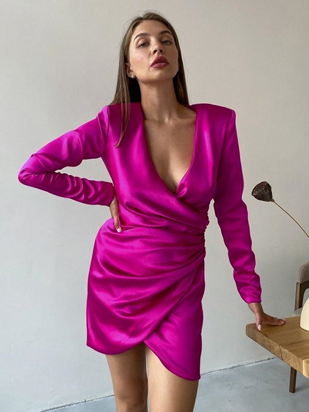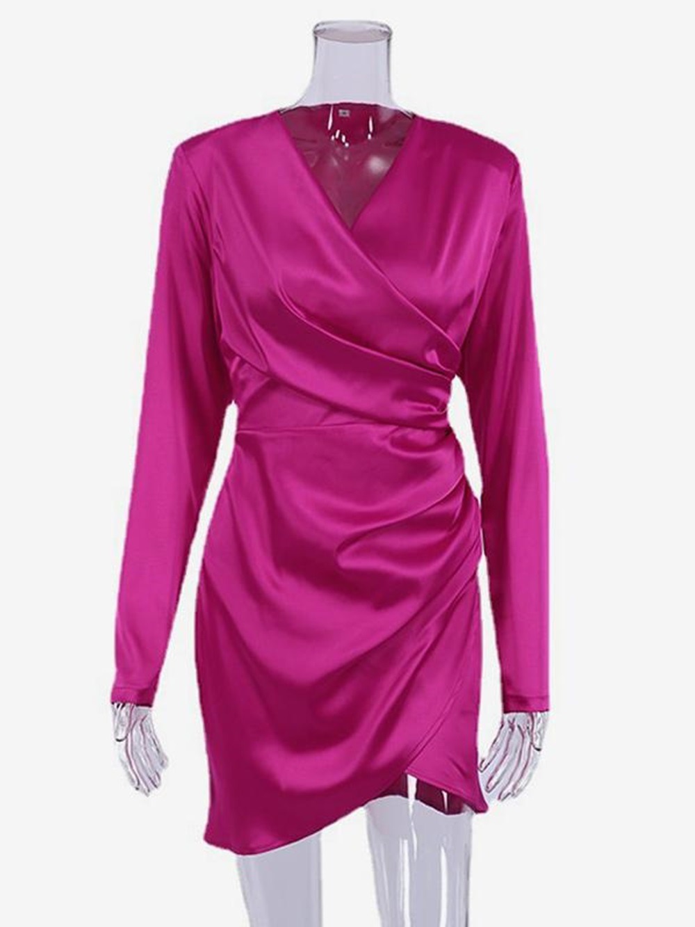 Polka Dot V-Neck Long Sleeve High Waist Dress