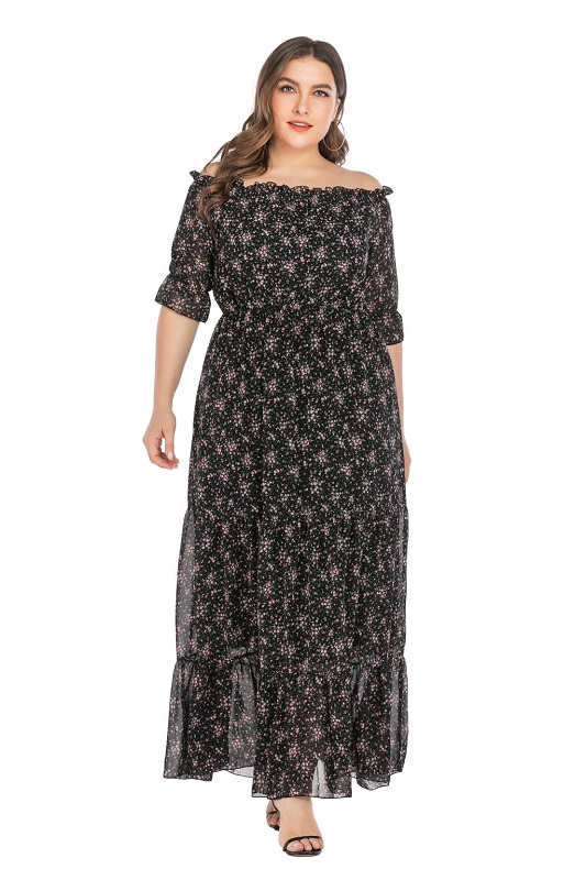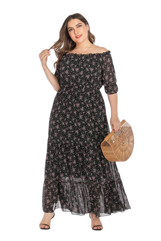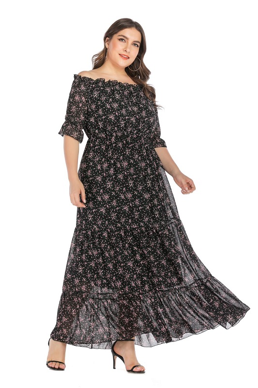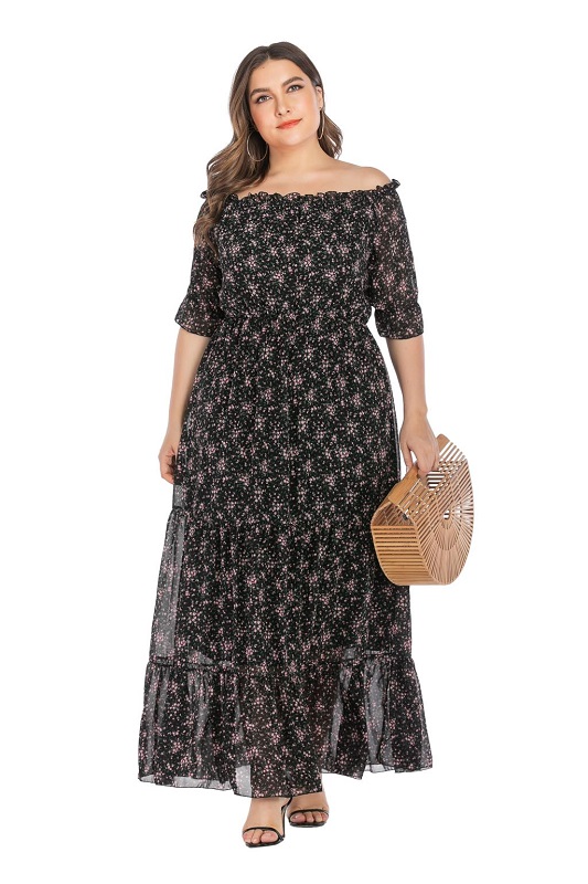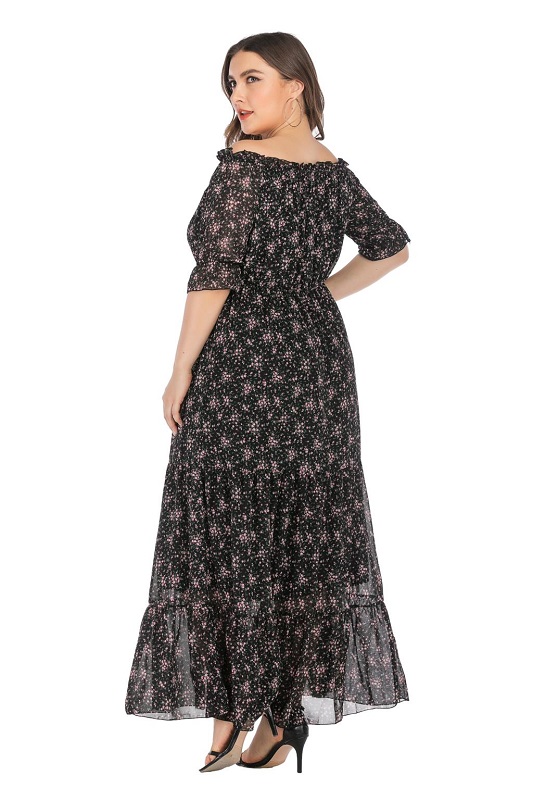 Be the first to review “Slash Neck Floral Print Ruffles Chiffon Boho Dress”