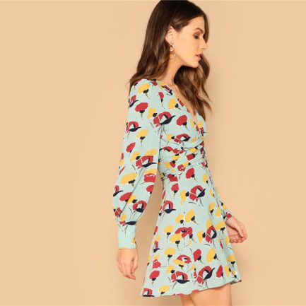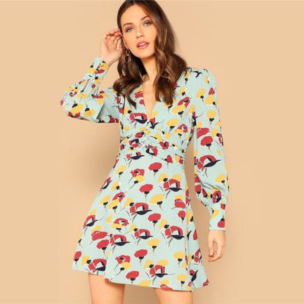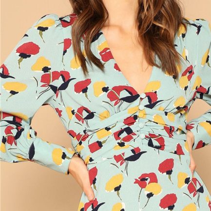 Be the first to review “Button Front Deep V Neck Floral Print Mini A Line Dress”