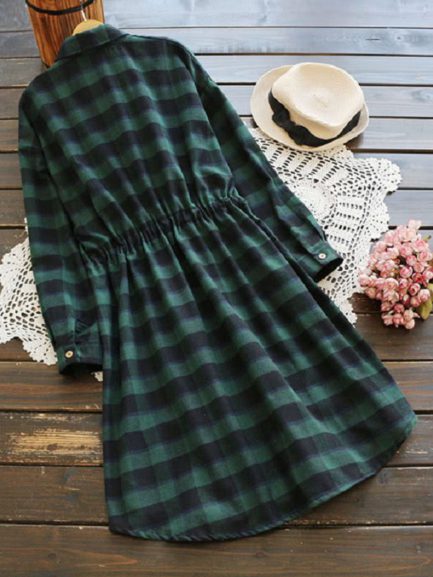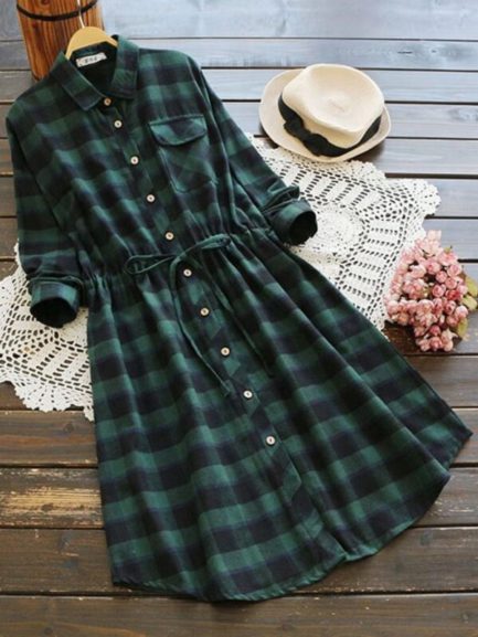 Be the first to review “Button Through Drawstring Waist Plaid Shirt Dress”