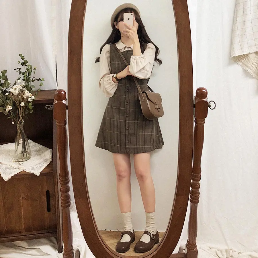 Be the first to review “Cute Mini Vest Style Design Retro Vintage Plaid Button Shirt Dress”