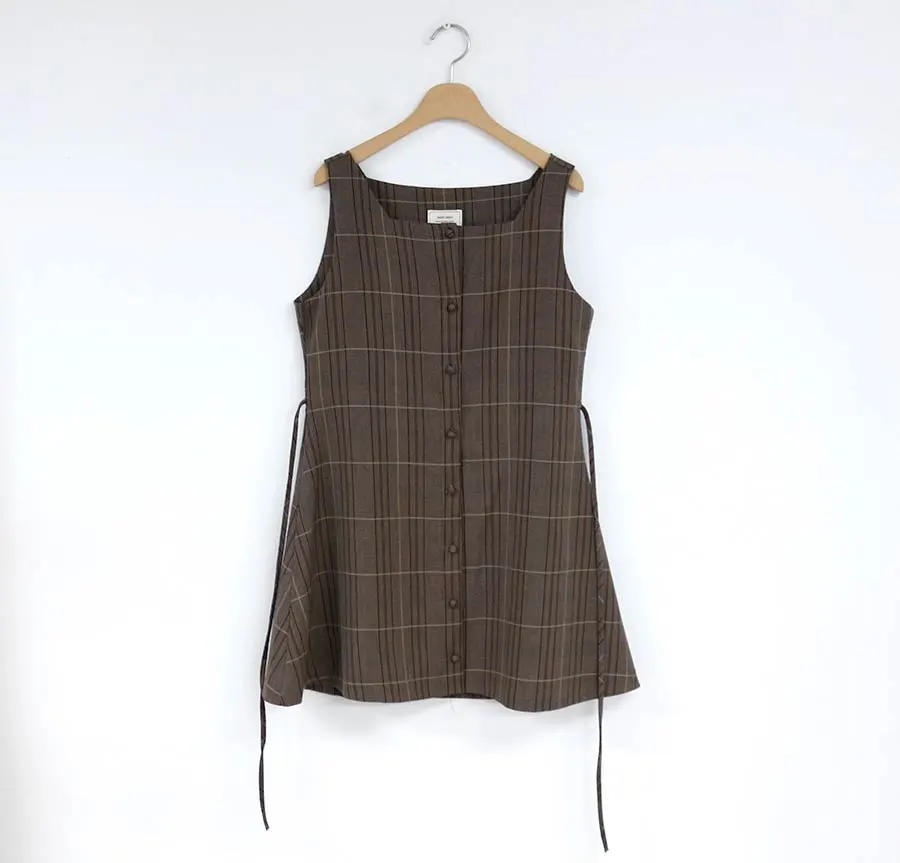 Cute Mini Vest Style Design Retro Vintage Plaid Button Shirt Dress