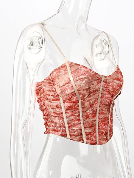 Camisole Straps Neck Sleeveless Printed Polyester Sexy Tops