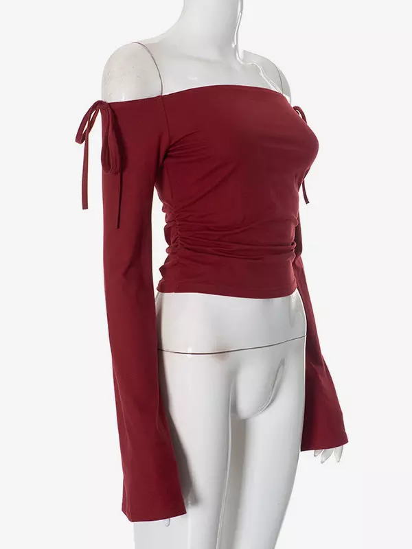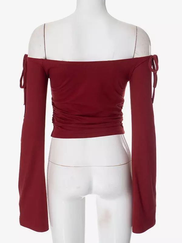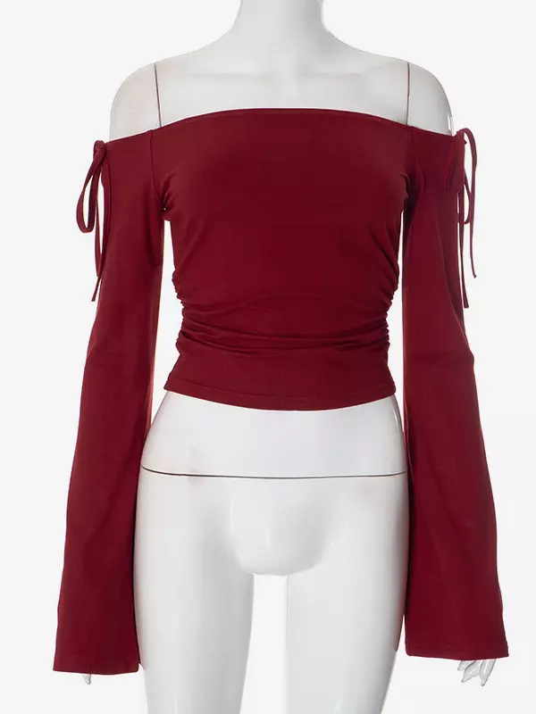 Be the first to review “Casual Bateau Off-shoulder Polyester Bell Sleeve Crop Top”