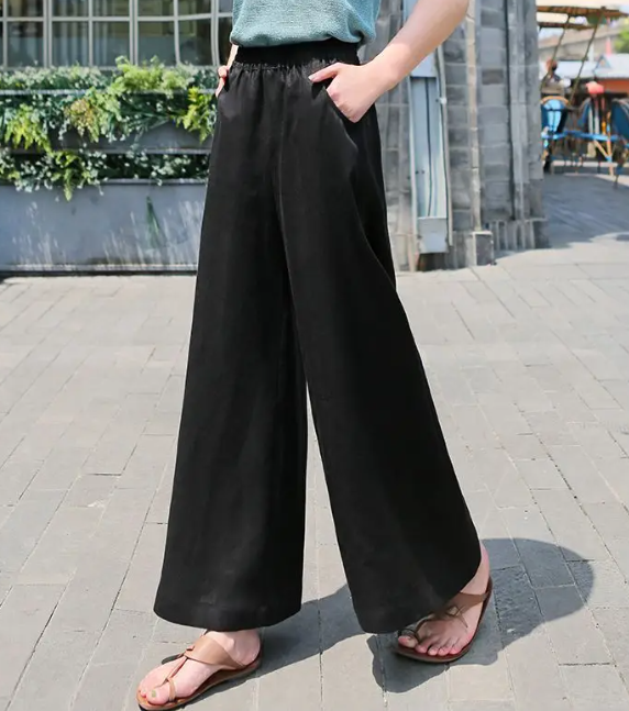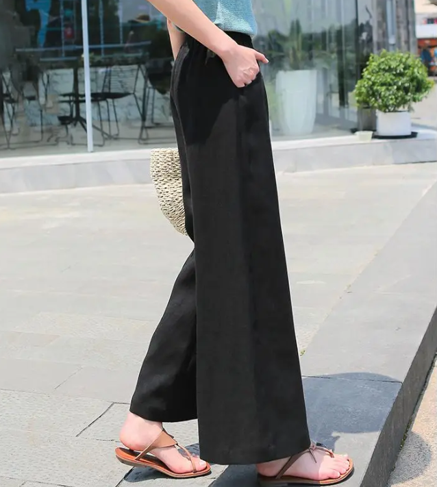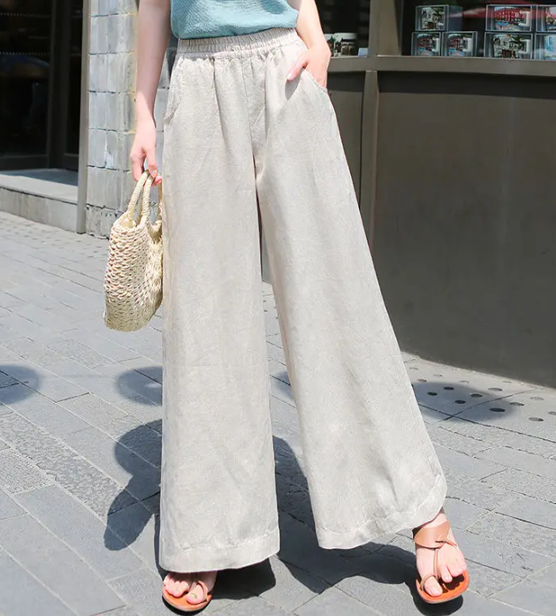 Be the first to review “Casual Elastic High Waist Cotton And Linen Wide Leg Pants”