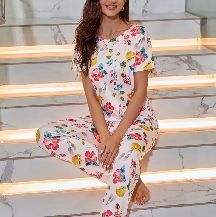 Be the first to review “Casual Floral Print Tops And Long Pants Pajama Sets”