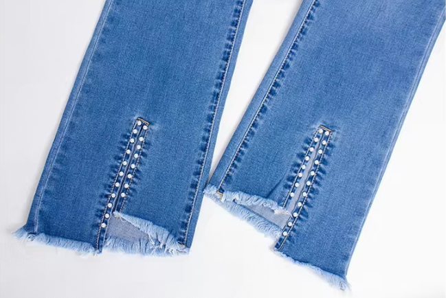Be the first to review “Casual Full Length Low Waist Beading Zipper Fly Pencil Jeans”