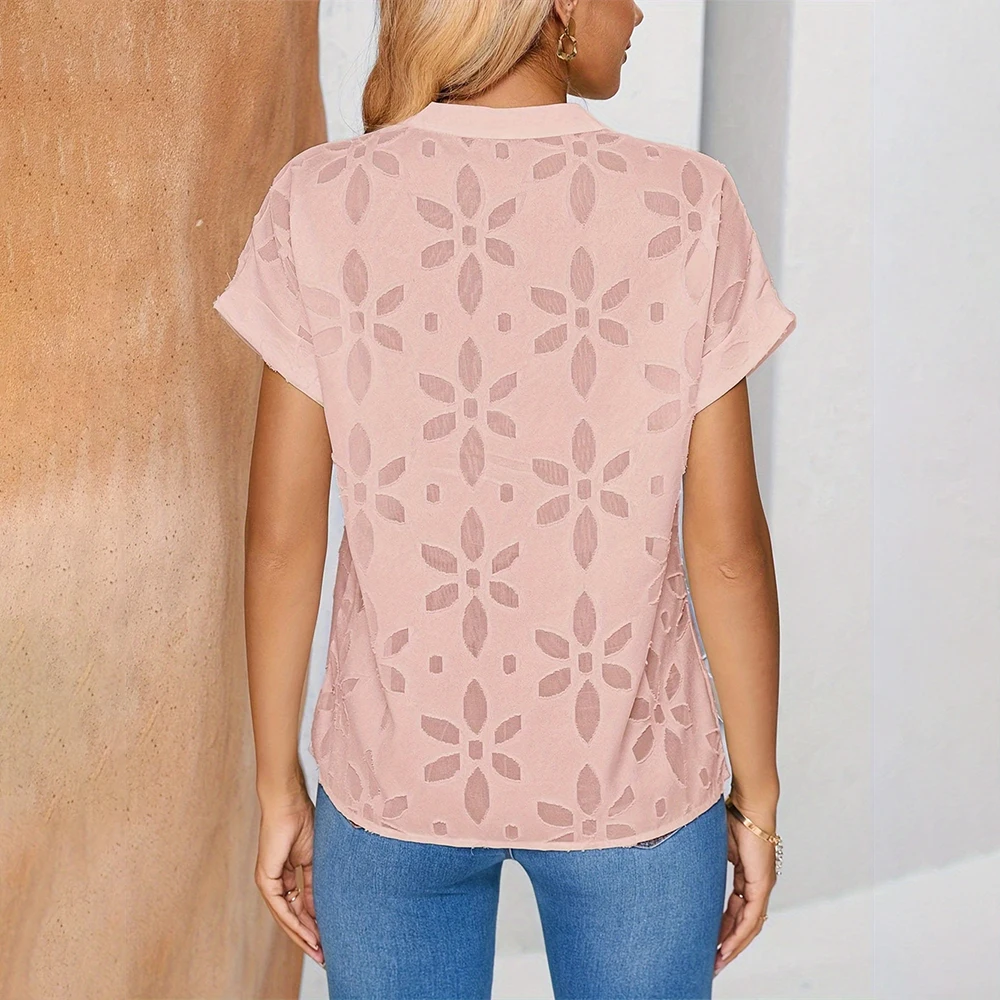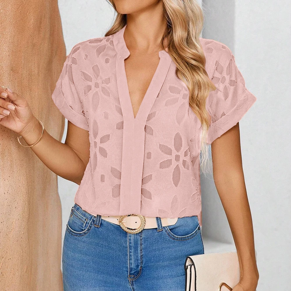 Casual Hollow Out Single Breasted Short Sleeve Shirts T-shirt